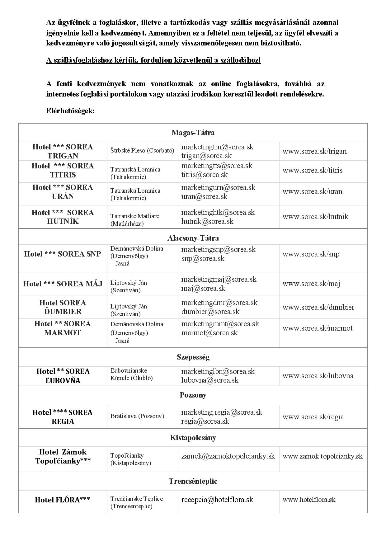 A Sorea szállodalánc ajánlatai